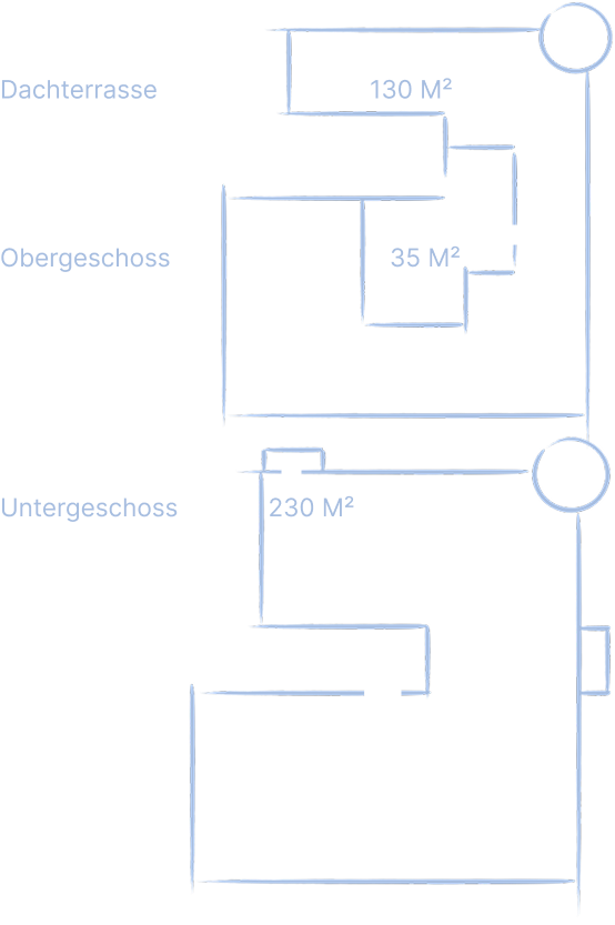 ca. 310 m² (inkl. 130 m² Dachterrassen, 1/3 in Wohnfläche enthalten)