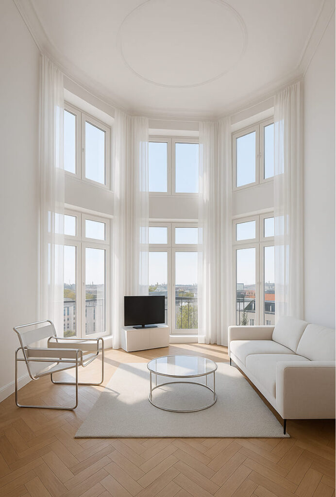 Ein großzügiges Penthouse, das historische Eleganz, moderne Architektur und spektakuläre Weitblicke zu einem außergewöhnlichen Wohnensemble verbindet.